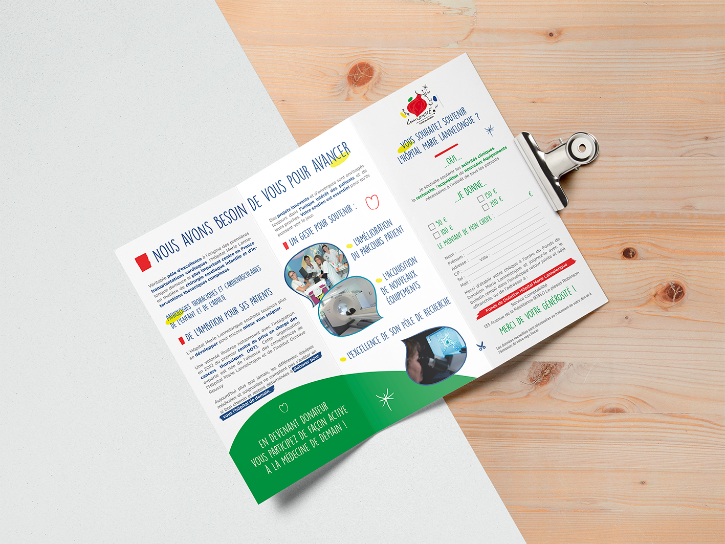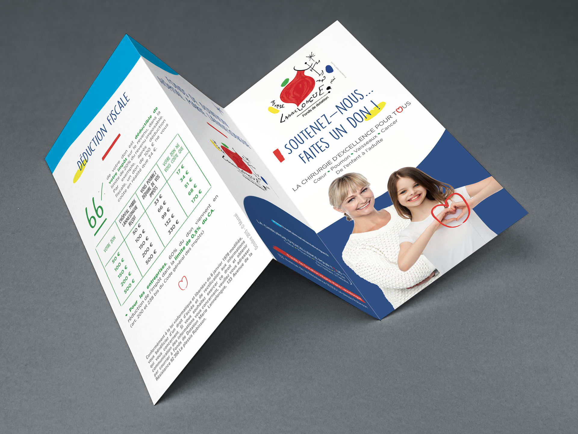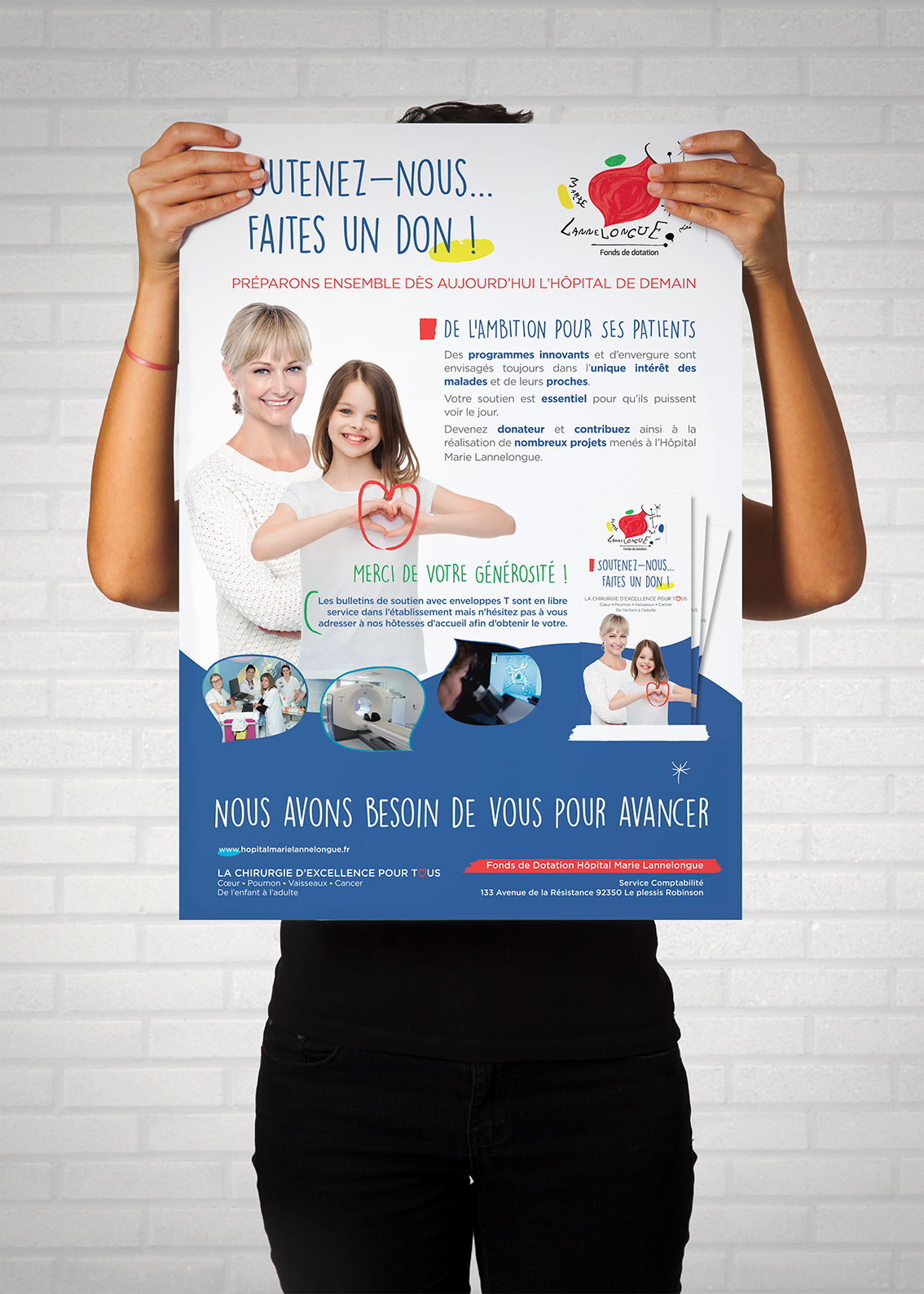 Création de supports print "appel aux dons" pour l'hôpital Marie Lannelongue. Pour le compte de l'agence MASSAI.